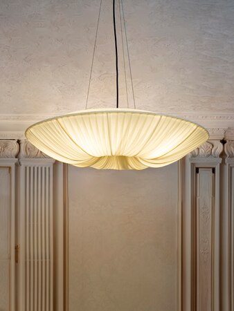 A fabric saucer pendant light is a chic and versatile lighting fixture that adds a soft, inviting ambiance to any room. The saucer-shaped design, combined with fabric materials, makes it both stylish and functional, creating a light that is perfect for various interior styles. Here's a closer look at this type of pendant light, along with some design ideas and tips for incorporating it into your space: Features of a Fabric Saucer Pendant Light: Fabric Shade: The shade is typically made from textiles like linen, cotton, or polyester, which diffuse the light gently, creating a warm and cozy glow. The fabric material also helps soften the light, reducing glare and making the room feel more inviting. Saucer Shape: The saucer or bowl shape of the shade is often wide and shallow, which allows for even light distribution. This shape can also make the light more decorative, as it creates a unique, modern silhouette. Variety of Colors and Textures: Fabric shades come in a wide range of colors, patterns, and textures, which gives you plenty of options to match your decor. Whether you're looking for neutral tones, bold colors, or textured fabrics, you can easily find a fabric saucer pendant light that suits your style. Popular Styles of Fabric Saucer Pendant Lights: 1. Modern Minimalist Fabric Saucer Light Design: A simple, neutral-colored fabric shade (such as white, beige, or gray) with clean lines and a minimalist silhouette. These lights often have sleek metal hardware in finishes like black, chrome, or brass to complement the modern aesthetic. Style: Perfect for modern, contemporary, or Scandinavian-inspired spaces where the focus is on simplicity and functionality. Tip: Opt for a light with dimming capabilities if you want to adjust the brightness to suit different moods or tasks. 2. Boho Fabric Saucer Pendant Light Design: These pendants may feature woven fabrics or textured textiles, like jute, linen, or cotton, often in earthy tones or patterns like stripes, geometric shapes, or even fringe detailing. Style: Ideal for bohemian, coastal, or eclectic spaces where natural materials and relaxed vibes are the focus. A boho fabric saucer pendant brings a warm, organic touch to your room. Tip: Pair with wood furniture, plants, and woven rugs to complete the boho look. 3. Industrial Fabric Saucer Pendant Light Design: The fabric shade is combined with exposed metal elements, such as an industrial-style chain or ceiling mount in finishes like matte black or rusted iron. These lights often have a more rugged, vintage look, perfect for an industrial space. Style: Suited for lofts, modern industrial rooms, or urban spaces, these lights bring a relaxed yet stylish contrast between the soft fabric and the hard metal. Tip: Choose a pendant with a slightly distressed or aged finish for an authentic industrial feel. 4. Colorful Fabric Saucer Pendant Light Design: Brightly colored fabric shades in bold tones like turquoise, mustard yellow, or coral create an eye-catching statement in the room. Some designs may feature multiple layers or contrast in color to add depth and interest. Style: Ideal for eclectic, playful, or mid-century modern spaces. These vibrant lights can liven up any room with a pop of color and personality. Tip: Use them in smaller doses, such as above a kitchen island or side table, to create a fun focal point. 5. Luxury Fabric Saucer Pendant Light Design: High-end versions of the fabric saucer pendant may use luxurious fabrics like silk, velvet, or satin. These elegant materials can add a touch of sophistication and opulence to a room. Style: Perfect for upscale, contemporary, or transitional spaces that need a statement piece. These lights often come with polished metal hardware like gold or chrome finishes, elevating the overall aesthetic. Tip: These luxury fabric pendant lights work beautifully in dining rooms, living rooms, or entryways where you want to make a lasting impression. 6. Oversized Fabric Saucer Pendant Light Design: Larger versions of the fabric saucer pendant light are perfect for creating a bold statement in a room. These oversized fixtures often have a wide, shallow drum or bowl shape that provides ample light coverage. Style: Ideal for spacious living rooms, dining rooms, or open-concept areas. The larger size allows the light to function as both a source of illumination and a focal point in the room. Tip: Use these in rooms with high ceilings or larger dining tables to create a grand effect. Where to Use Fabric Saucer Pendant Lights: Dining Rooms: Hang a fabric saucer pendant light above your dining table to create a warm, welcoming atmosphere. The soft light from the fabric shade will make meals feel more intimate. Living Rooms: Use a fabric pendant light to provide ambient lighting in your living room. If you have a large seating area, a bigger pendant light can serve as a central lighting feature. Kitchens: Install fabric pendant lights above a kitchen island or breakfast nook for functional lighting with style. Choose a design that complements the overall aesthetic of your kitchen. Bedrooms: A fabric saucer pendant light works well above a nightstand or in a corner of the room as soft, ambient lighting for relaxation. Entryways: Make a great first impression by hanging a fabric pendant light in your entryway. Choose a fixture with a striking design to welcome guests into your home. Hallways: In narrow hallways, fabric pendant lights can provide soft lighting that brightens the space without overwhelming it. Opt for a smaller design for a subtle effect. Benefits of Fabric Saucer Pendant Lights: Soft, Diffused Light: The fabric shade helps to diffuse the light, providing a softer, warmer glow that’s more comfortable for relaxing or entertaining. Versatility: Available in a range of sizes, colors, and materials, fabric saucer pendant lights can suit a wide variety of interior styles, from modern and minimalist to boho and traditional. Energy Efficiency: Many fabri